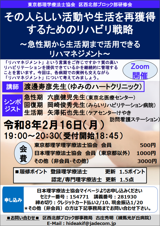 東京都理学療法士協会 区西北部ブロック部研修会のお知らせ