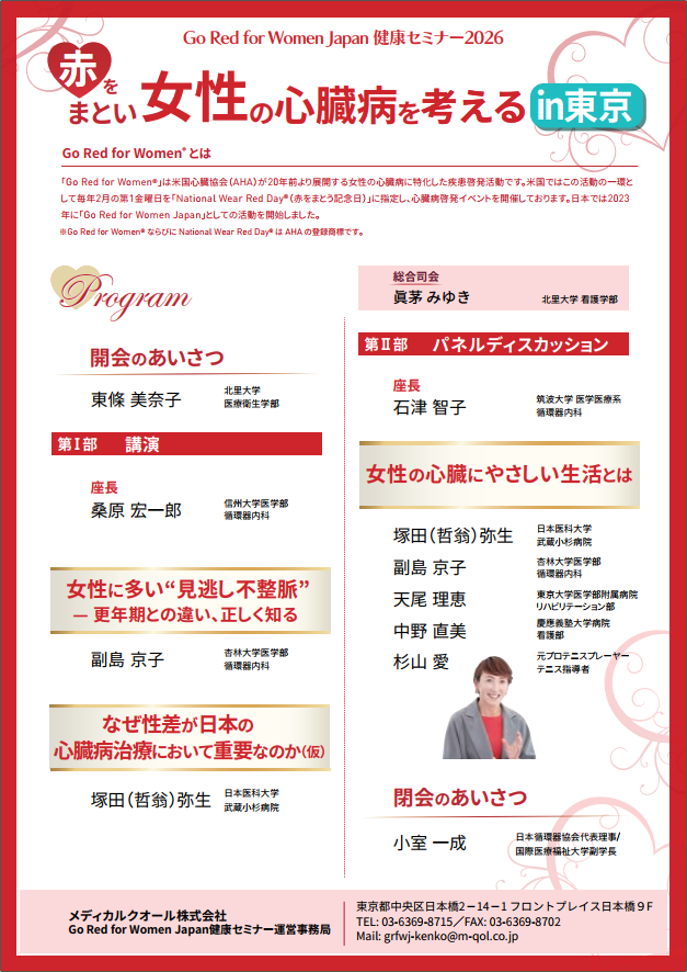 問い合わせ:メディカルクオール株式会社 Go Red for Women Japan健康セミナー運営事務局