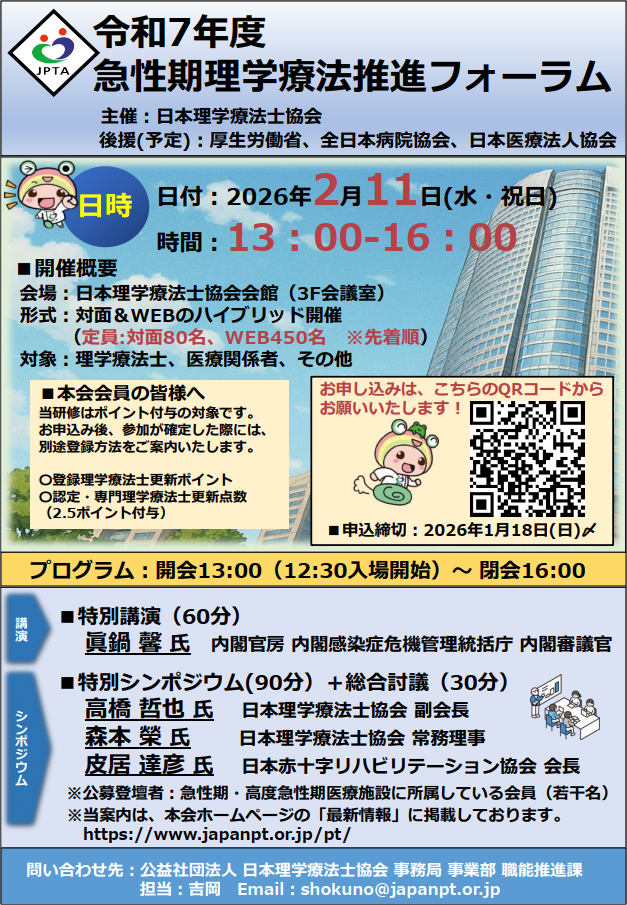 日本理学療法士協会 令和7年度 急性期理学療法推進フォーラムのお知らせ
